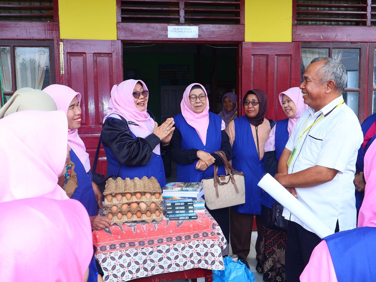 Di Pesantren Ibrahim Harun, Kelurahan Tiakar, rombongan menyerahkan bantuan berupa buku tulis, alat tulis, dan bahan pangan seperti telur untuk mendukung kebutuhan santri.