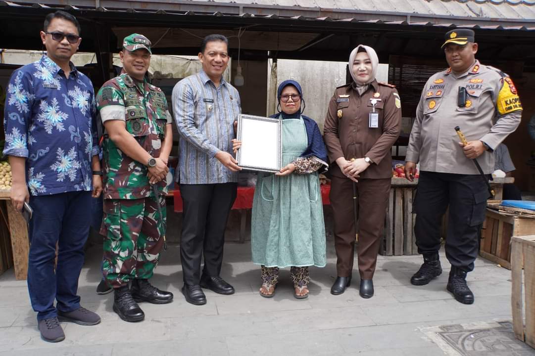 Penyerahan secara simbolis sertifikat halal tersebut dilakukan Penjabat (Pj) Wali Kota, Sonny Budaya Putra, A.P, M.Si kepada dua orang perwakilan pelaku UMKM, di Pasar Pusat. Kamis (7/3/2024).