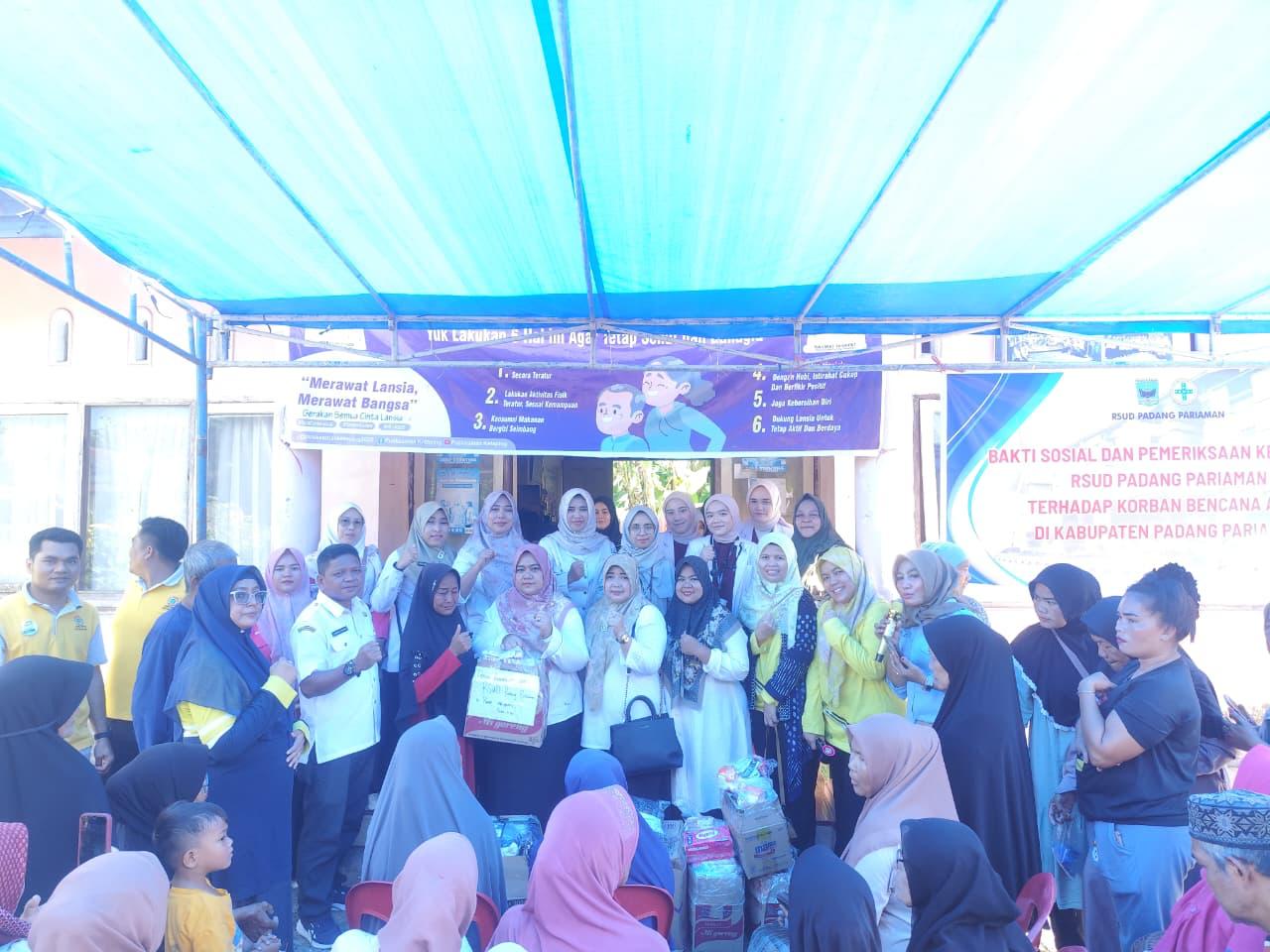 Direktur RSUD Padang Pariaman, Syafrinawati, turun langsung ke lokasi bencana didampingi oleh tim medis yang terdiri dari dokter spesialis, staf RSUD, Kabag, Kabid, serta bidan desa setempat.