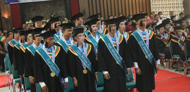 Dalam proses Wisuda tutur hadir Sekda Mentawai, Martinus Dahlan, Kepala Forkopimda, Kepala Dinas Pendidikan, A Oreste Sakeroe dan Kepala OPD lain, Orang Tua Wisudawan serta tamu undangan. (Tirman/Humas Kampus)