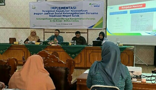 Arosuka, (Minangkabaunews) – BPJamsostek Cabang Solok melakukan koordinasi dengan Kejaksaan setempat untuk memberikan bantuan hukum agar Guru dan Tenaga Kependidikan (GTK) non Aparatur Sipil Negara (ASN) di Kabupaten Solok yang belum mendapatkan perlindungan jaminan sosial ketenagakerjaan.