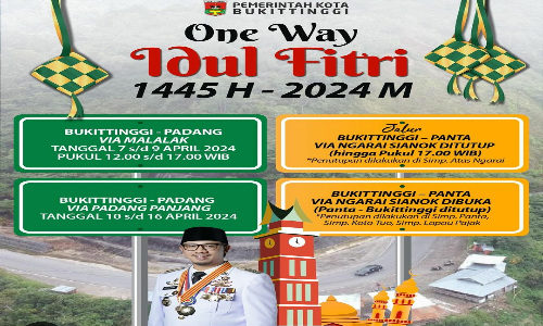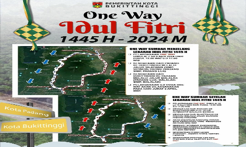 MINANGKABAUNEWS.com, BUKITTINGGI – Pemerintah Provinsi (Pemprov) bersama Direktorat Lalulintas Kepolisian Daerah Sumatra Barat (Ditlantas Polda Sumbar) menerapkan aturan jalan satu arah digelar guna mengantisipasi padatnya jalur Padang-Bukittinggi saat mudik Lebaran 2024. Pemberlakuan jalur satu arah digelar mulai H-3 hingga H+5 Lebaran.