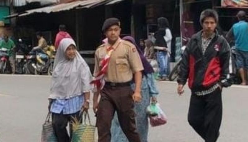 Pramuka penegak dari unsur ambalan, Satuan Karya (Saka) dan Dewan Kerja Pramuka Penegak Pandega itu menyapa pengunjung pasar dan membawa mengantarkan belanjaan ibu-ibu hingga tempat parkir ojek.