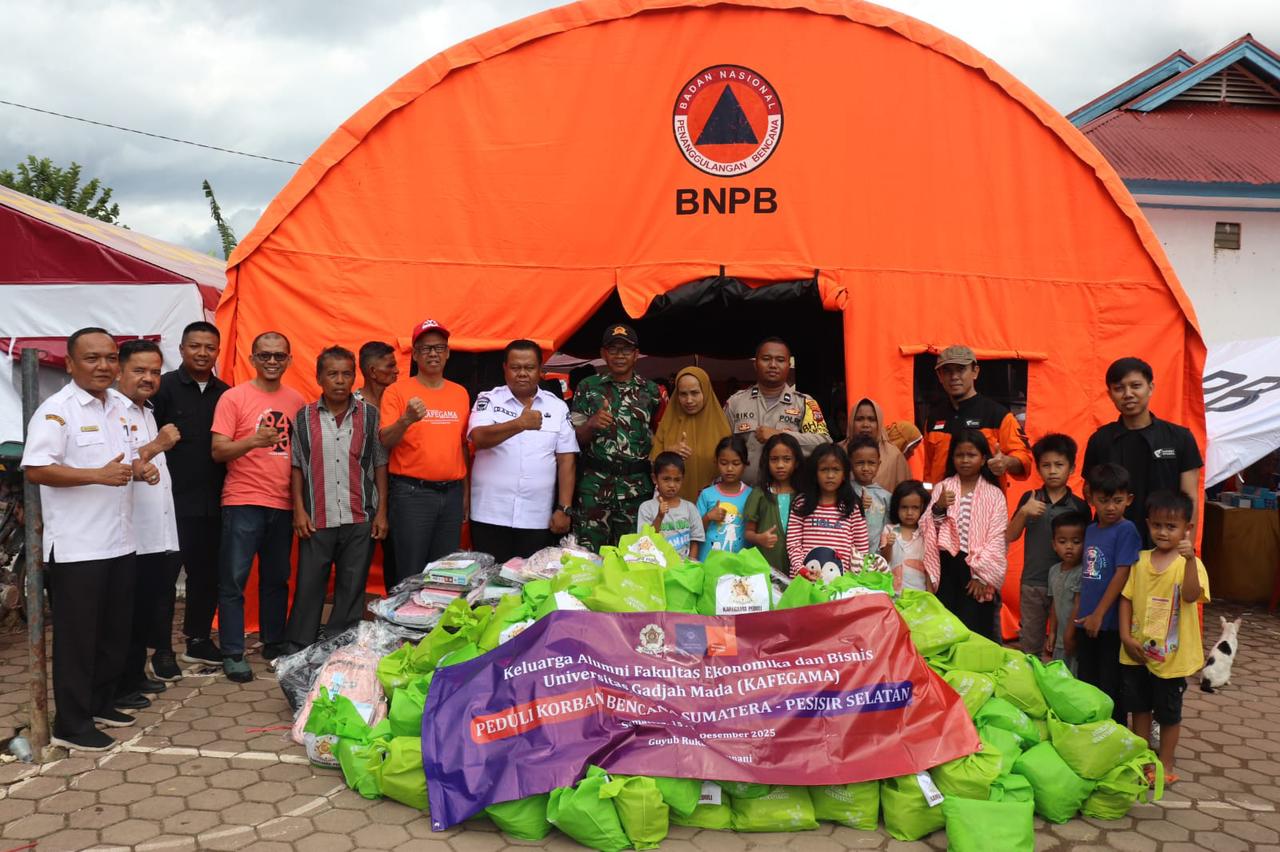 Melalui program KAFEGAMA Peduli, Keluarga Alumni Fakultas Ekonomika dan Bisnis Universitas Gadjah Mada (FEB UGM) menyalurkan bantuan kemanusiaan senilai Rp200 juta untuk membantu para korban banjir dan longsor di Ranah Minang.