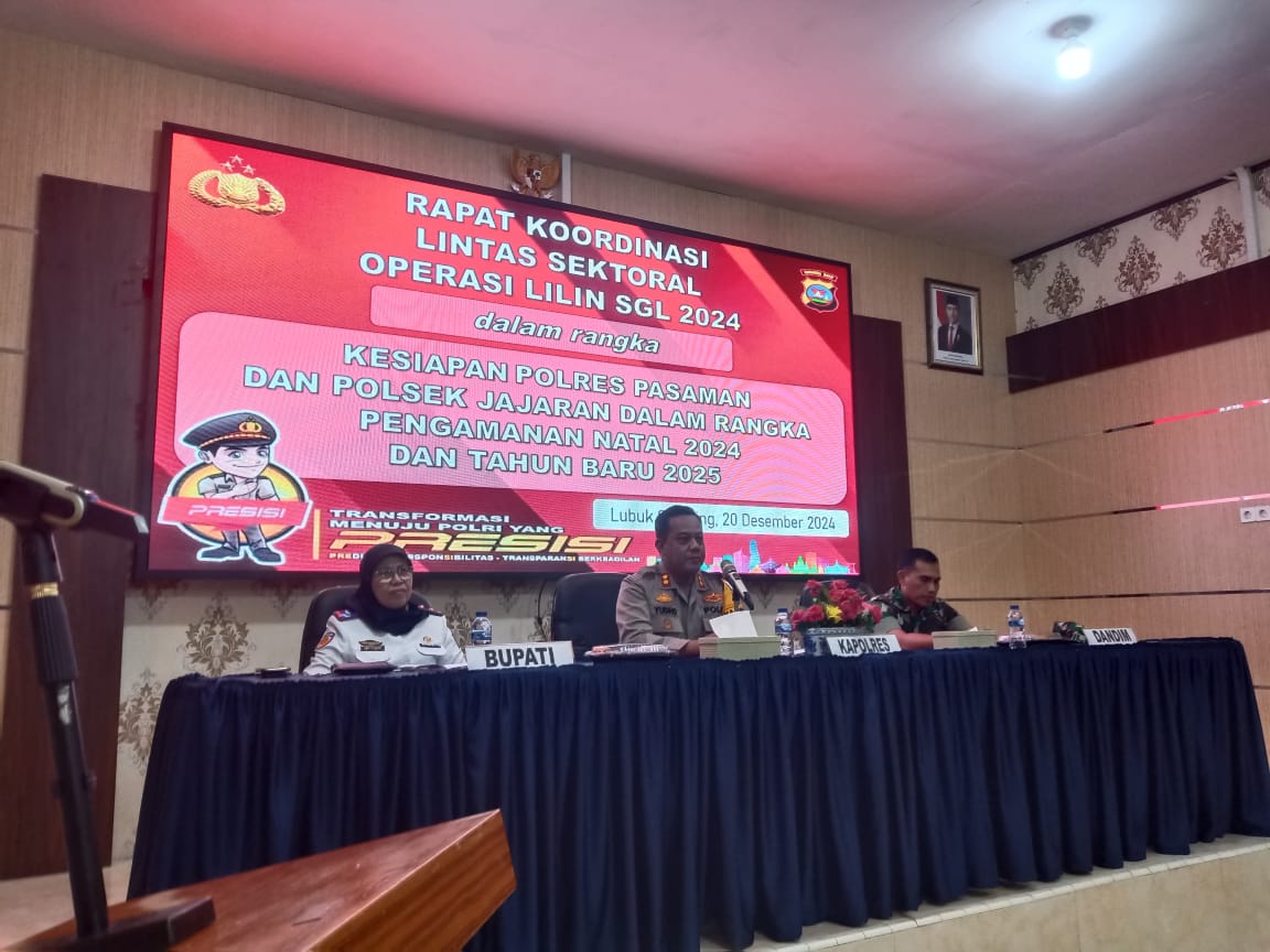 Pasaman, Minangkabaunews.com – Polres Pasaman gelar Rapat Lintas Sektoral Operasi Lilin SGL 2024 dalam rangka kesiapan Polres Pasaman dan Polsek jajaran dalam rangka pengaman natal 2024 dan tahun baru 2025, Jum’at (20/12/2024) di Aula Polres Pasaman.