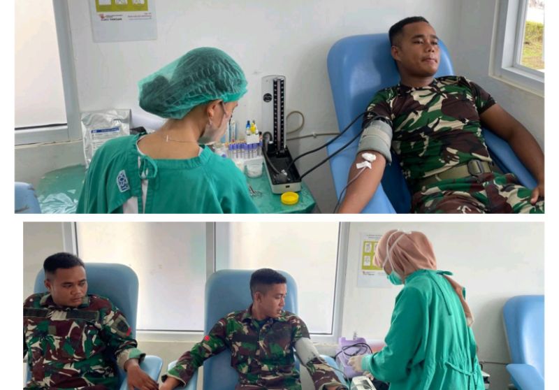 Aksi donor darah yang dilakukan oleh Personil pasukan Satgas, dengan adanya informasi kekurangan darah di PMI dan RSUD Kepulauan Mentawai.