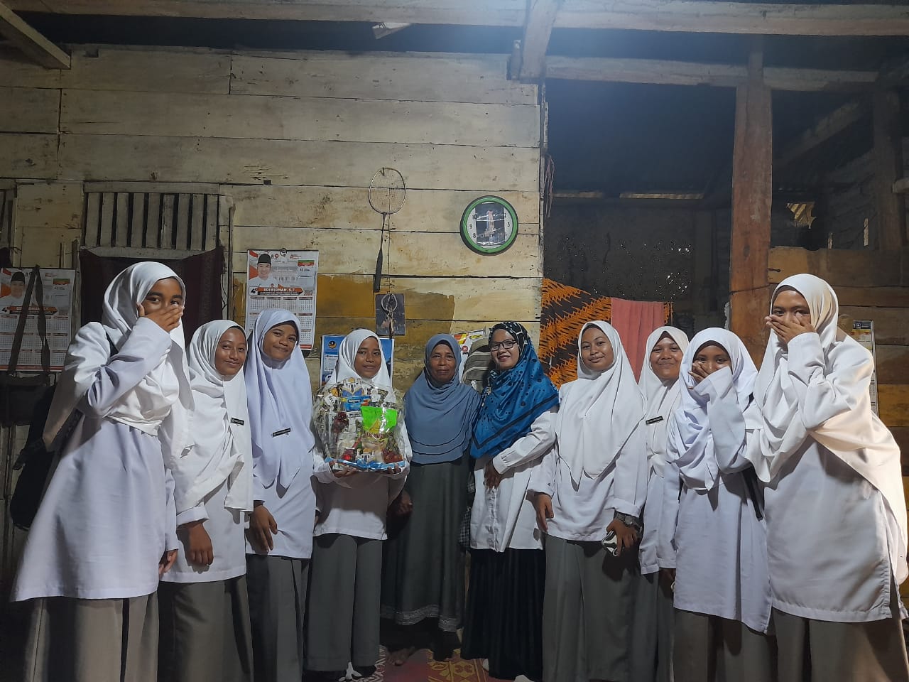 Sekaligus kejutan, karena tidak diberitahu kepada siswa yang bersangkutan, kalau ada serombongan siswa, guru dan Kepala Madrasah datang ke rumahnya.