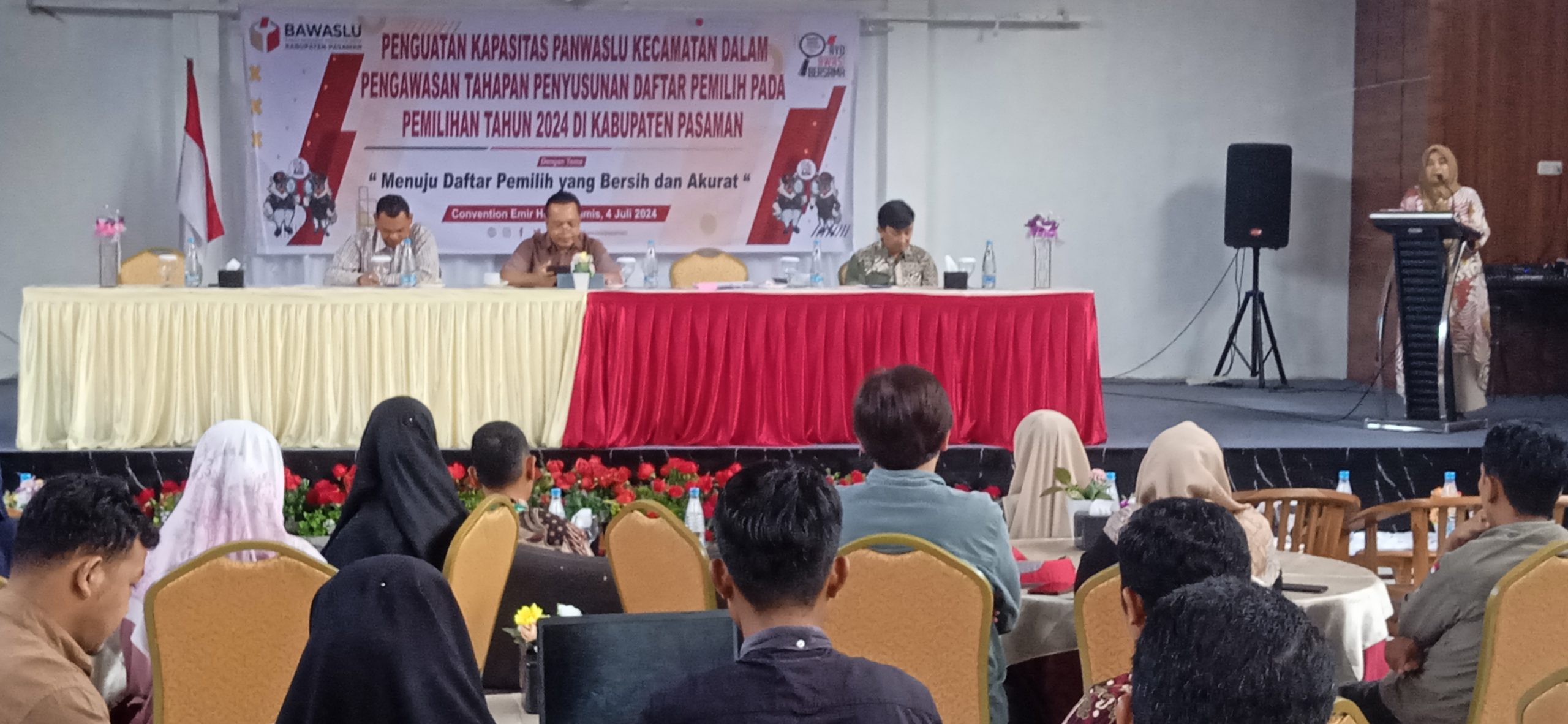 Pasaman, Minangkabaunews.com – Bawaslu Kabupaten Pasaman menggelar acara Penguatan Kapasitas Panwaslu Kecamatan Dalam Pengawasan Tahapan Penyusunan Daftar Pemiih Pada Pemilihan Tahun 2024 di Kabupaten Pasaman dengan tema” Menuju Daftar Pemiih yang Bersih dan Akurat”, Kamis (4/7/2024) di aula Emir Hotel Lubuk Sikaping.