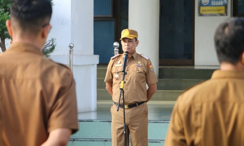 Apel pagi dihadiri oleh Asisten, Staf Ahli, Kepala OPD/Badan/Bagian, Eselon III, IV beserta PNS, CPNS, PPPK dan Honorer.