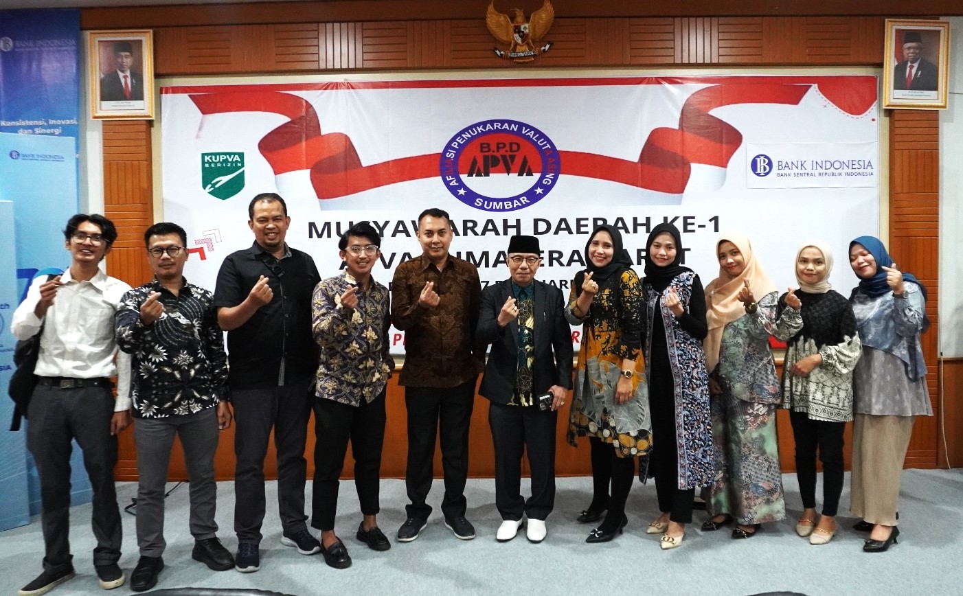 PADANG – Afiliasi Penukaran Valuta Asing (APVA) Sumbar mengelar Musyawarah Daerah Badan Pengurus untuk masa periode 2024 – 2028, bertempat di Ruangan Rapat excellence Gedung Bank Indonesia, Sabtu (17/02/24).