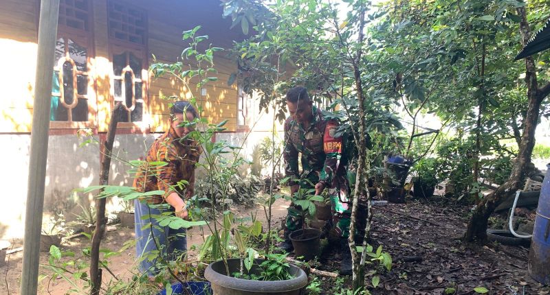 Babinsa memberikan pemahaman tentang pembibitan pohon buah Kelengkeng yang ditanam di pekarangan rumah. Dengan ini petani setempat memanfaatkan lahan pekarangan untuk menanam tanaman yang bermanfaat.
