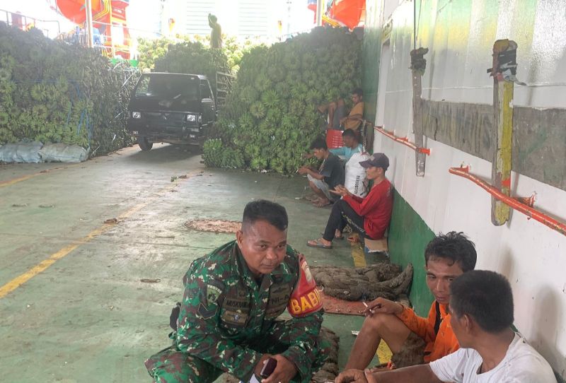 Mitra Karib yang disambangi Babinsa yakni Pak Andi dan warga lainnya yang bekerja sebagai Buruh angkat pelabuhan Pokai.