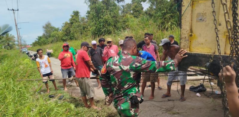 Babinsa dalam kesempatannya turun kejalan menemui ketua pemuda Muara dan ikut membantu masyarakat dalam kesulitan.