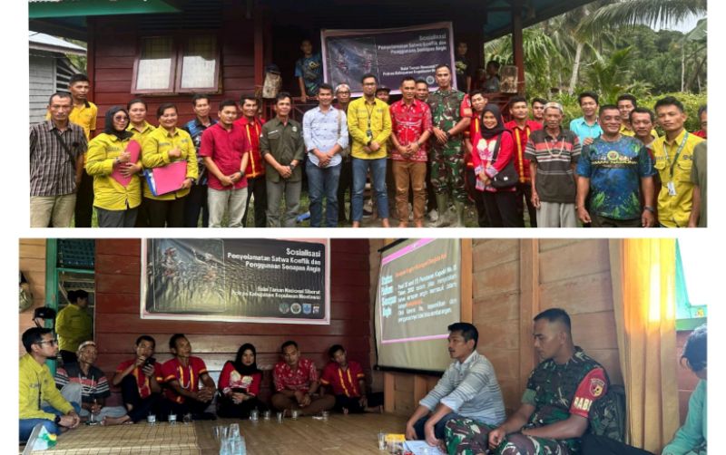 MINANGKABAUNEWS.COM, MENTAWAI – Babinsa Koramil 02 Muara Siberut Serda L Hutagalung menghadiri undangan dari Balai Taman Nasional Siberut dalam rangka sosialisasi Penyelamatan Satwa Konflik dan Penggunaan Senapan Angin.