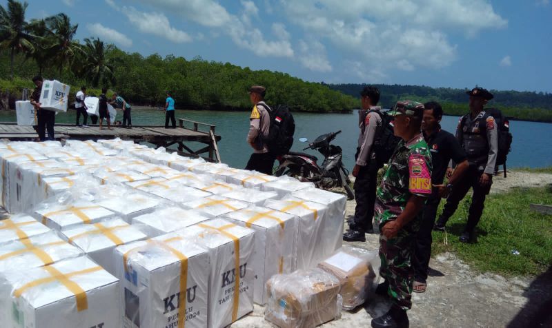 Pendistribusian Logistik Pemilu tahun 2024 dari gudang logistik KPU Saibi menuju ke Kantor Desa Saliguma Kecamatan Siberut Tengah berupa kotak suara sebanyak 50 buah, Bilik suara 10 kotak