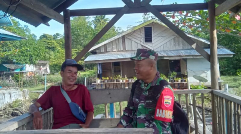 MINANGKABAUNEWS.COM, MENTAWAI – Babinsa Koramil 02 Muara Siberut Selatan, Serda Hermanto Komsos bersama masyarakat di Dusun Pasakiat.