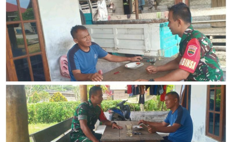 MINANGKABAUNEWS.COM, MENTAWAI – Babinsa Koramil 02 Muara Siberut Serda L. Hutagalung sambangi warga binaan melaksanakan Komunikasi Sosial (Komsos).