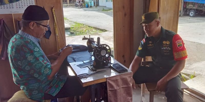 Mitra karib yaitu Pak Yusri yang kesehariannya sebagai tukang jahit, disambangi Babinsa dan diberikan motivasi.