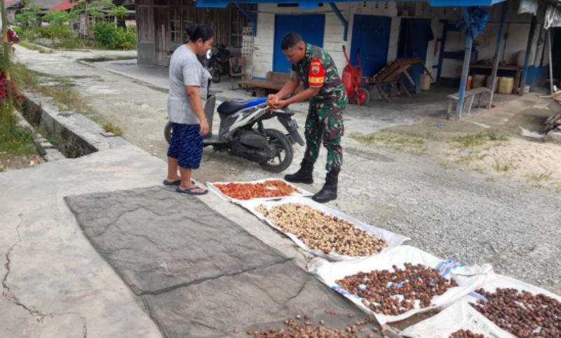 Dalam kegiatan sehari-hari yang dilakukan oleh masyarakat, Babinsa tetap mendukung dan melakukan pendampingan pengolahan buah pala yang saat dikerjakan oleh warga masyarakat dan untuk meningkatkan harga jual yang lebih tinggi, penjemuran buah pala harus maksimal, tambah Sertu Pioner Situngkir.