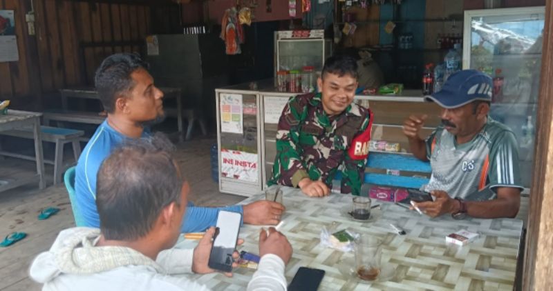 Babinsa koramil 04/Sikakap, Serda J.Simamora dalam komsos bersama masyarakat nelayan mengajak mereka agar mengurungkan niatnya untuk tidak beraktivitas.
