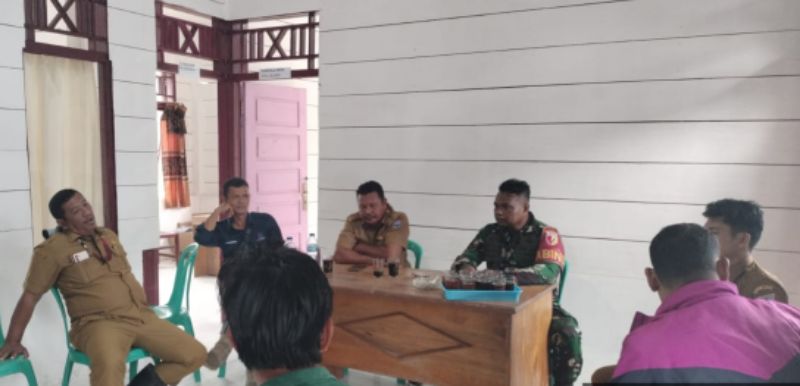 Babinramil melakukan Komunikasi Sosial dengan Camat Siberut Utara membahas program kegiatan tahun 2025 di wilayah Kecamatan Siberut Utara bersama staf lainnya.