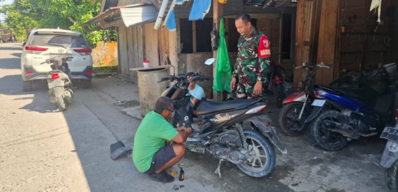 Berbincang dengan wiraswasta, Babinsa mengajak dan memotivasi dalam kegiatan yang dilakukan oleh warga binaan untuk meningkatkan ekonomi.