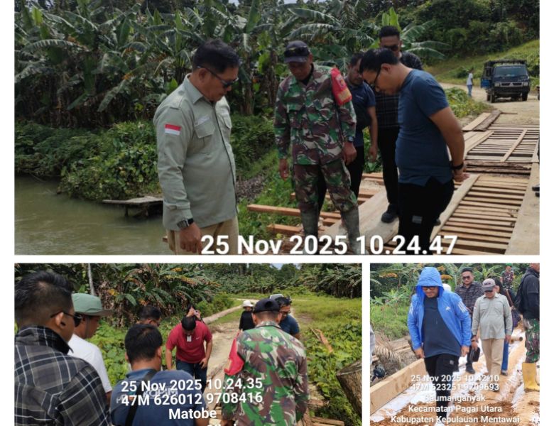 Babinsa menyebutkan, bawah jembatan ini sedang dibangun langsung untuk akses masyarakat setempat. Agar pembangunan lancar Bupati langsung kelokasi mamastikan pekerjaan selesai tepat waktu, sebut Babinsa. Selasa (25/11/2025)