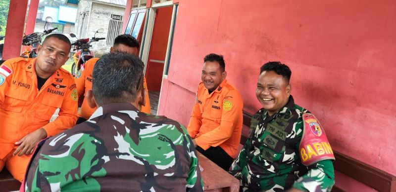 Babinsa dan rekan rekan lainnya menyambangi petugas SAR Pokai dan berinteraksi seputaran aktivitas yang dilakukan oleh petugas SAR.