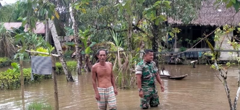 Akibat Banjir yang melanda daerah setempat, warga mengalami kesulitan untuk beraktivitas mencari makanan untuk kebutuhan, ucap Pelda Andarmo Pangles. (Tirman/Pendim)