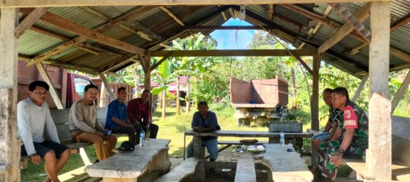 Kegiataan Komsos yang dilakukan kali ini, adalah upaya menjalin hubungan silaturahmi dan bertukar pikiran dengan pihak karyawan PT Hariona yang melakukan pekerjaan proyek jalan di desa setempat.