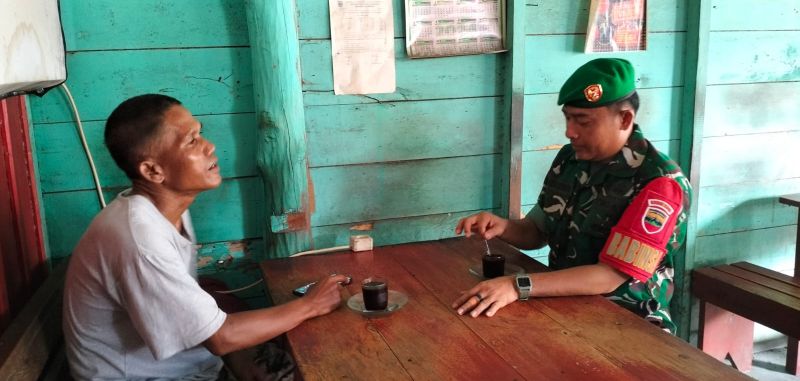 Sambil bersilaturahmi dengan masyarakat melalui komunikasi sosial, Babinsa turut mengajak agar masyarakat binaan setempat dapat saling menjaga keamanan dan ketertiban umum.