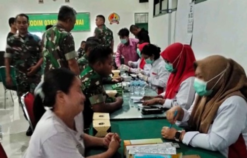 “Donor darah ini tidak hanya bermanfaat bagi yang membutuhkan, tetapi juga bagi kesehatan pendonornya sendiri,” jelas Dandim saat memantau proses donor darah.