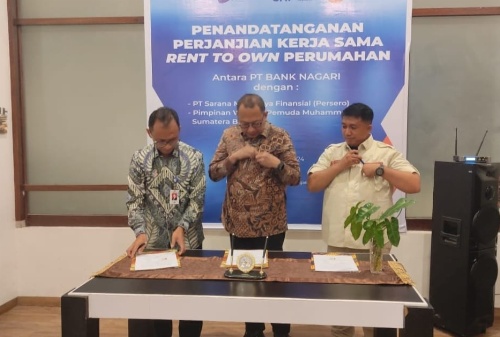 MINANGKABAUNEWS.com, PADANG – Bank Nagari bersama PT Sarana Multigriya Finansial (Persero) (SMF) dan Pimpinan Wilayah Pemuda Muhammadiyah (PWPM) Sumatera Barat menginisiasi pengembangan perumahan berbasis syariah di Ranah Minang. Langkah ini diwujudkan melalui penandatanganan kerja sama program Rent to Own atau sewa beli di Suasso, Kota Padang, Kamis (28/11/2024).