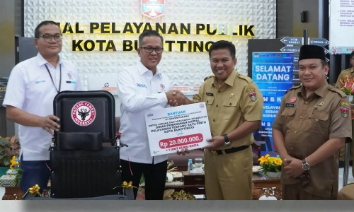 Wali Kota Bukittinggi Erman Safar melalui Asisten II Setdako Rismal Hadi didampingi Kepala Dinas Penanaman Modal dan Pelayanan Terpadu Satu Pintu (DPMPTSP) Ahda Hidayat, menyampaikan ucapan terimakasih atas bantuan Corporate Social Responsibility (CSR) dari PT. Semen Padang untuk pemenuhan sarana dan prasarana di Mal Pelayanan Publik (MPP) Kota Bukittinggi.