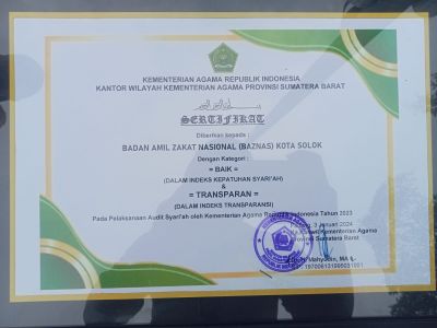 “Ini bukti bahwa Baznas Kota Solok bekerja dengan baik dan transparan. Karena itu teruslah salurkan zakat ke Baznas Kota Solok. Kami akan kelola dengan baik. terima kasih Muzaki, terima kasih Kementerian Agama RI” Kata Zaini.