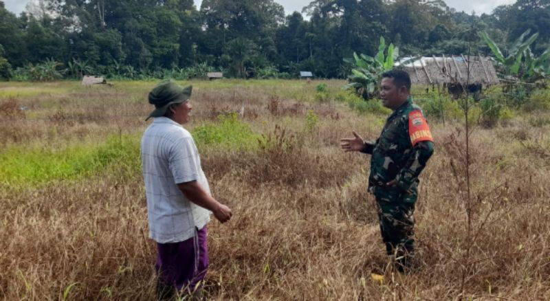 Babinramil langsung turun dilapangan agar bisa menemui masyarakat petani dan memberikan dukungan motivasi dalam pengolahan lahan.