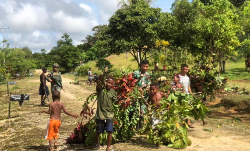 Personel Pos Buohsa terus bertekad untuk selalu untuk berbaur dengan warga binaan di kampung Buohsa dalam meningkatkan kesejahteraan salah satunya kegiatan sehari-hari yang dilaksanakan di kampung Buohsa