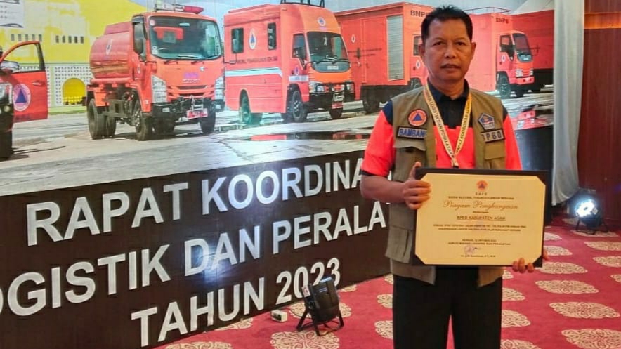 MINANGKABAUNEWS, AGAM — Badan Penanggulangan Bencana Daerah (BPBD) Kabupaten Agam meraih penghargaannya pemenang terfavorit kompetisi yel-yel pada momen bulan peringatan Pengurangan Risiko Bencana (PRB) 2023.