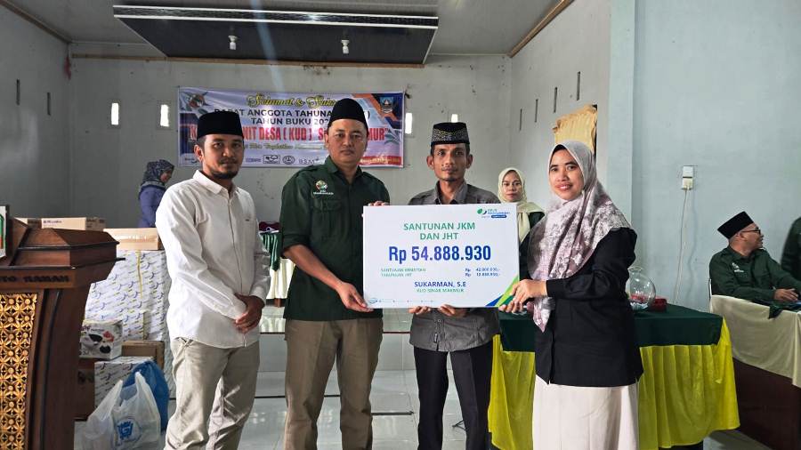 MINANGKABAUNEWS.COM, DHARMASRAYA – BPJS Ketenagakerjaan Cabang Dharmasraya, Sumatera Barat, menyerahkan secara simbolis santuanan kematian Ketua KUD Sinar Makmur serta terus mendorong semua anggota koperasi KUD Sinar makmur agar terdaftar sebagai peserta BPJS Ketenagakerjaan.
