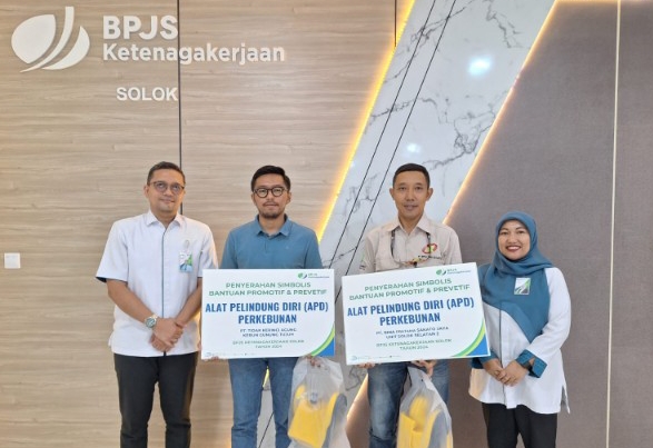 Dia menambahkan bahwa penyerahan Alat Pelindung Diri (APD) Perkebunan kepada dua perusahaan tersebut karena merupakan salah satu perusahaan yang tertib secara administrasi dan tidak menunggak iuran, serta telah mengikutkan seluruh pekerjanya dalam program BPJS Ketenagakerjaan.