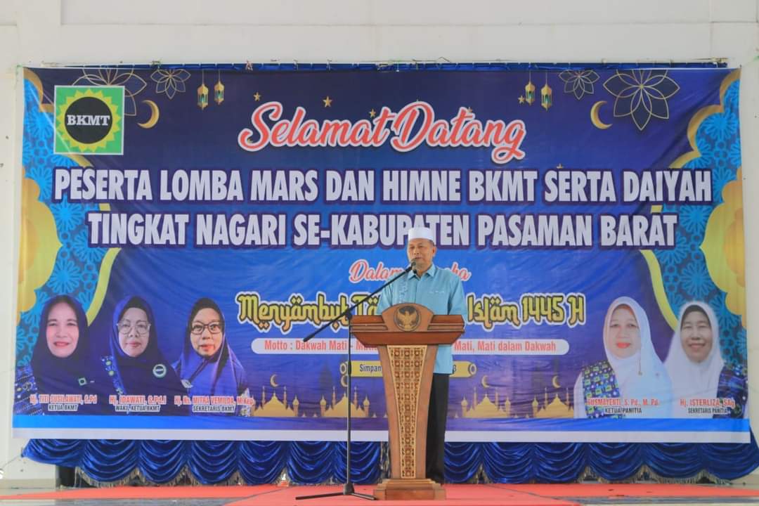 PASAMAN BARAT – Bupati Hamsuardi yang didampingi Ketua BKMT Pasbar Titi Hamsuardi membuka secara resmi Lomba Mars Dan Himne BKMT Serta Daiyah Tingkat Nagari Se-Kabupaten Pasaman Barat Tahun 2023, Minggu (16/7) di Balerong Pusako Anak Nagari.