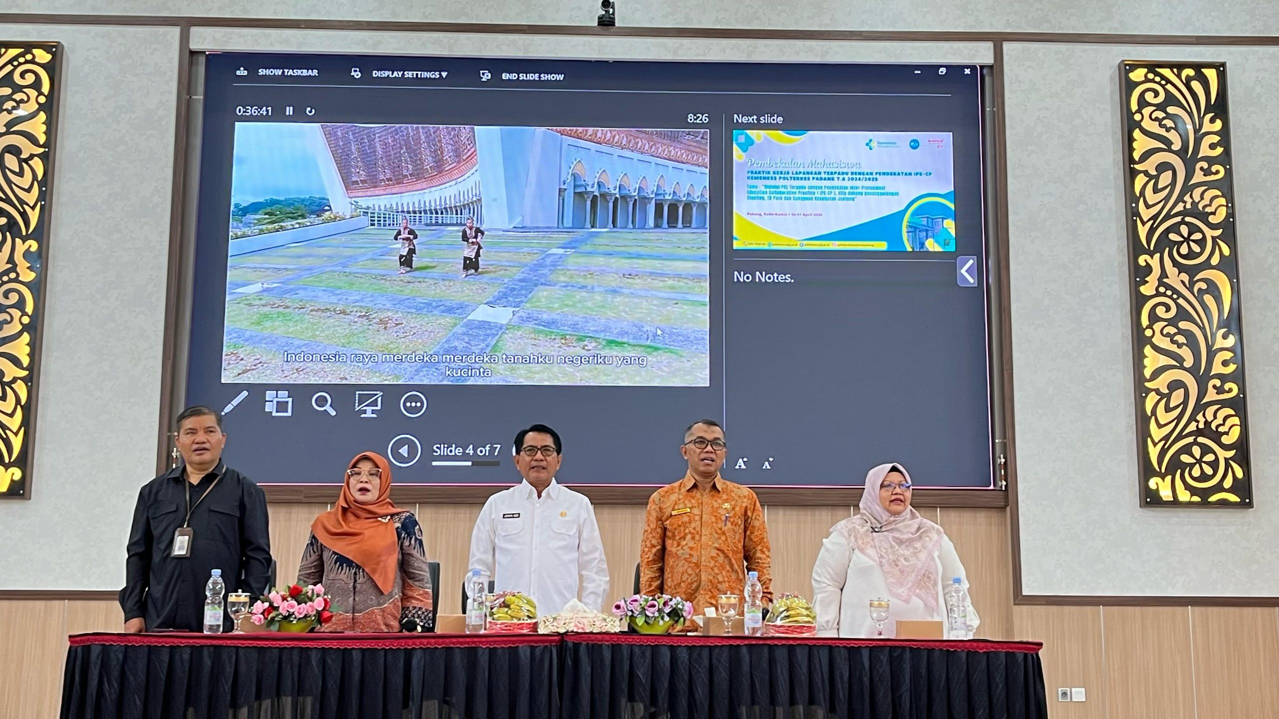 Bupati JKA yang saat itu didampingi Plt. Kepala Dinas Kesehatan Dr. Efriyeni, beserta jajaran, disambut oleh unsur dari Poltekes Kemenkes, Wadir 1 Dr. Gusnedi, S.TP, MPH dan Wadir 2 Dr. Irmawartini, S.Pd, MKM, dan jajaran serta seluruh mahasiswa PKL terpadu.