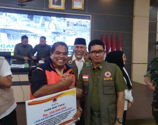 Pada kesempatan tersebut Pemerintah kabupaten Padang Pariaman menerima bantuan operasional Posko Penanganan Darurat Bencana sebesar Rp. 250.000.000,- dari BNPB yang diserahkan langsung oleh Kepala BNPB Letjend Suharyanto kepada Bupati Padang Pariaman Suhatri Bur.