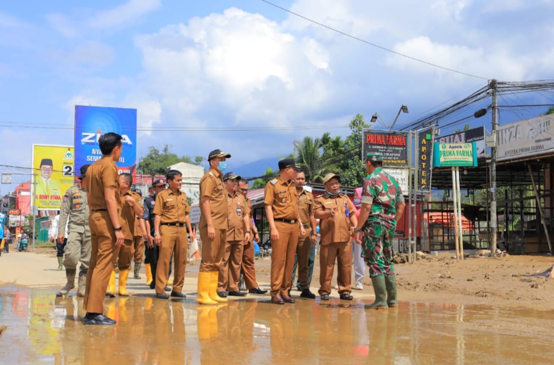 Pasaman, Minangkabaunews.com- Pasca banjir bandang di Lubuk Sikaping Plt.Bupati Pasaman Sabar AS didampingi Plh. Sekdakab Yasri Uripsyah,Dandim 0305 Pasaman, kepala OPD, Ketua Baznas, Camat Lubuk Sikaping dan Walinagari kembali meninjau lokasi banjir, Selasa (5/12/).