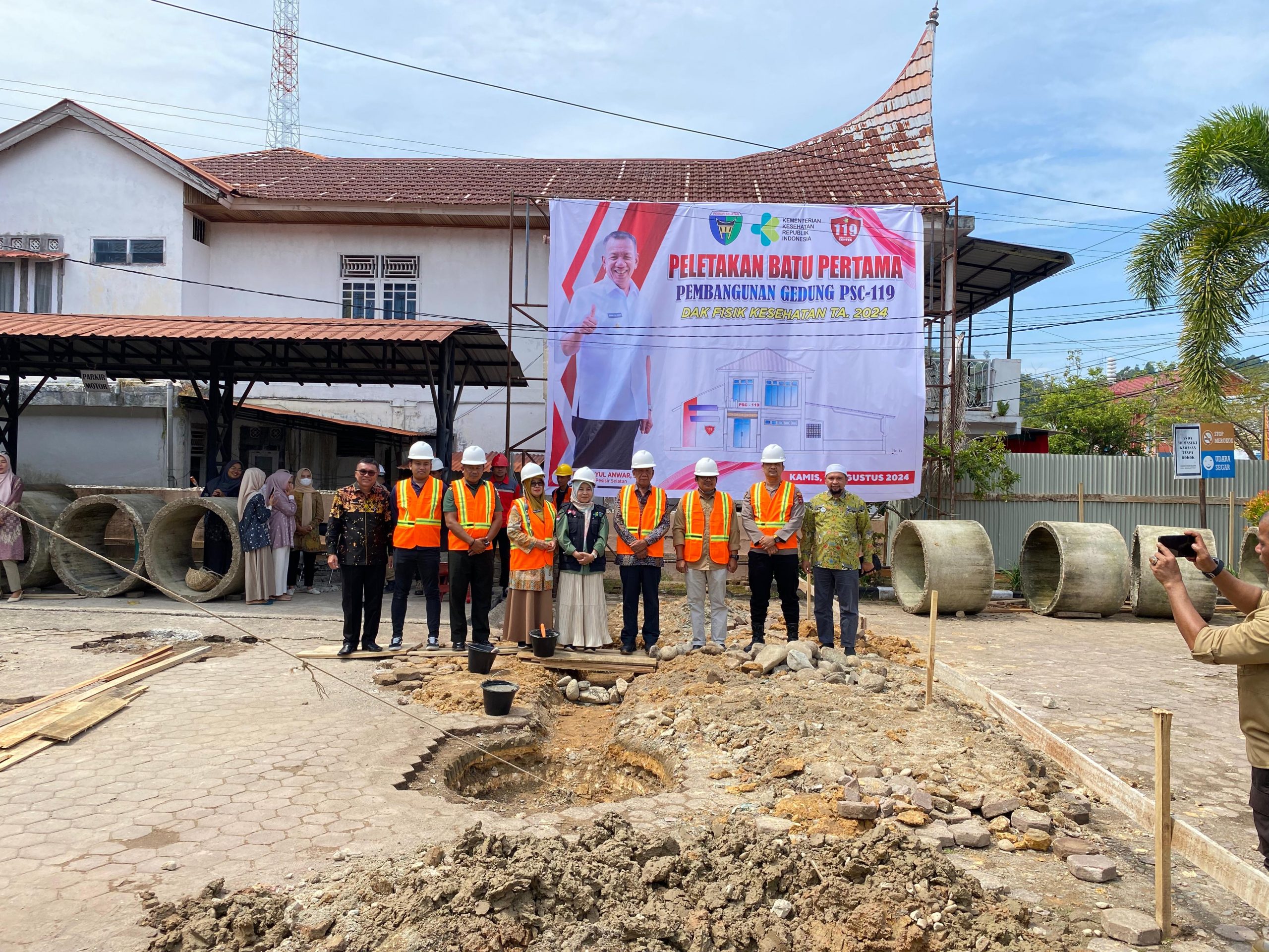 Pesisir Selatan — Bupati Pesisir Selatan, Rusma Yul Anwar melakukan peletakan batu pertama Pembangunan Gedung Painan Safety Center (PSC) di halaman Kantor Dinas Kesehatan Painan, Kamis (8/08).