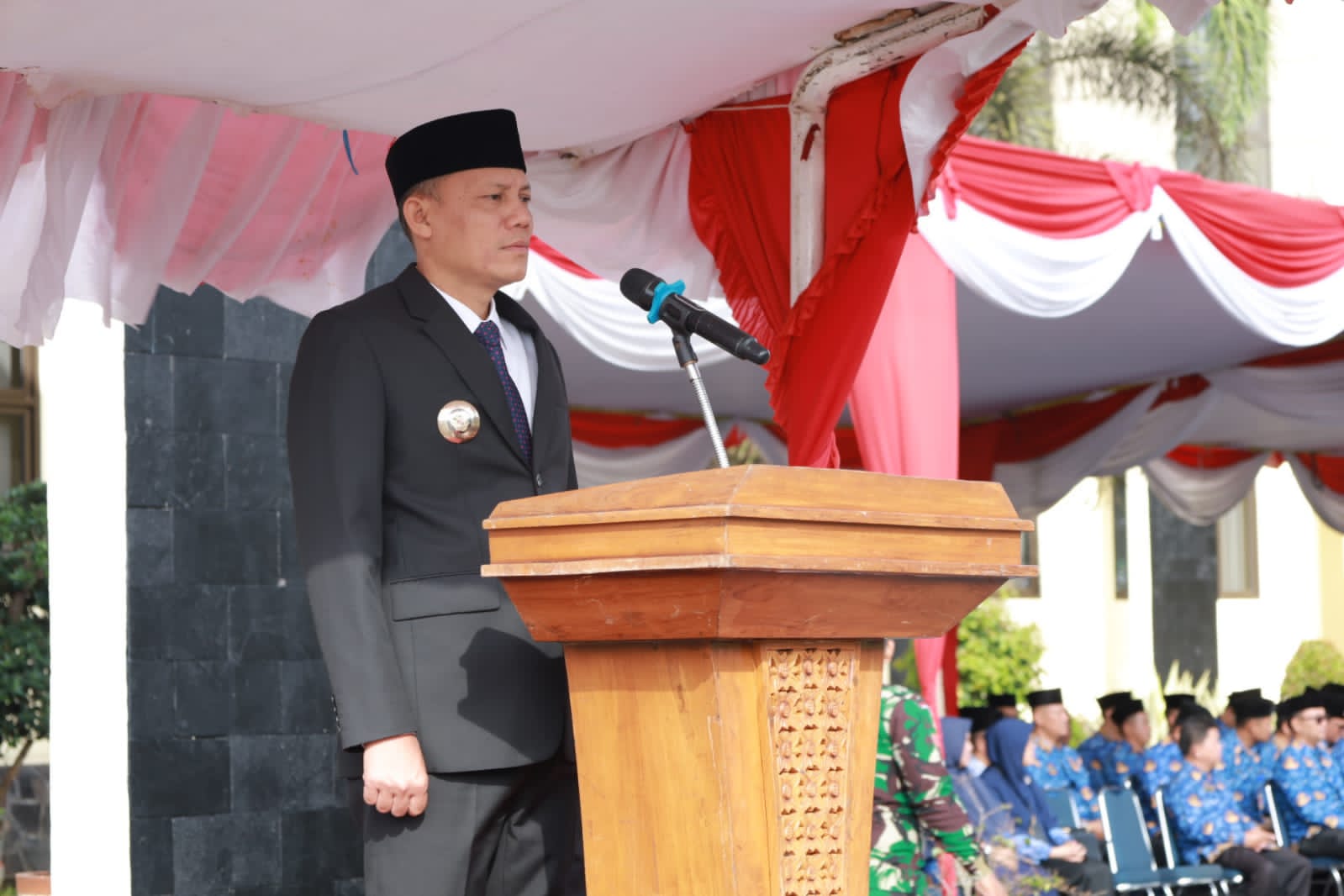 Bupati Sabar AS saat menyampaikan Amanat Presiden Republik Indonesia menyebutkan, Peringatan hari bela negara ke – 75 yang diselenggarakan sekarang ini merupakan momentum bagi kita untuk bersatu dan berkonstribusi positif demi indonesia maju yang dicita – citakan.