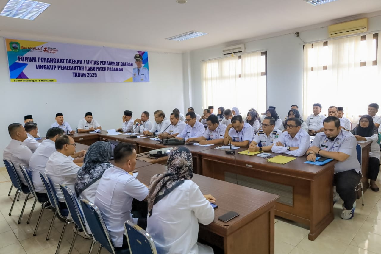 Pasaman, Minangkabaunews.com – Dalam rangka penyusunan Rencana Kerja Pemerintah Daerah Kabupaten Pasaman dan Rencana Kerja Perangkat Daerah Tahun 2026 serta memenuhi ketentuan Peraturan Menteri Dalam Negeri Nomor 86 Tahun 2017, dilaksanakan Forum Perangkat Daerah/Lintas Perangkat Daerah di Lingkungan Pemerintah Kabupaten Pasaman Tahun 2025, yang dibuka secara resmi oleh Bupati Pasaman Sabar AS di Aula BAPPEDA Kabupaten Pasaman, Rabu, (05/03/2025).