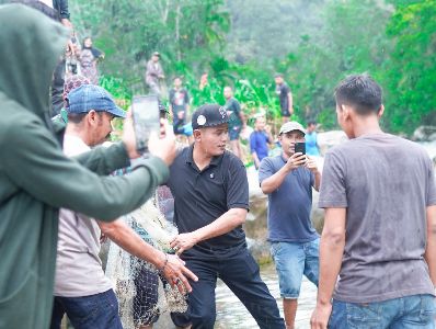 MINANGKABAUNEWS, SOLOK – Bupati Solok, Jon Firman Pandu manjalo ikan larangan di Jorong Lubuak Muaro Nagari Sungai Abu, Kecamatan Hiliran Gumanti, Jum’at (04/04/2025).