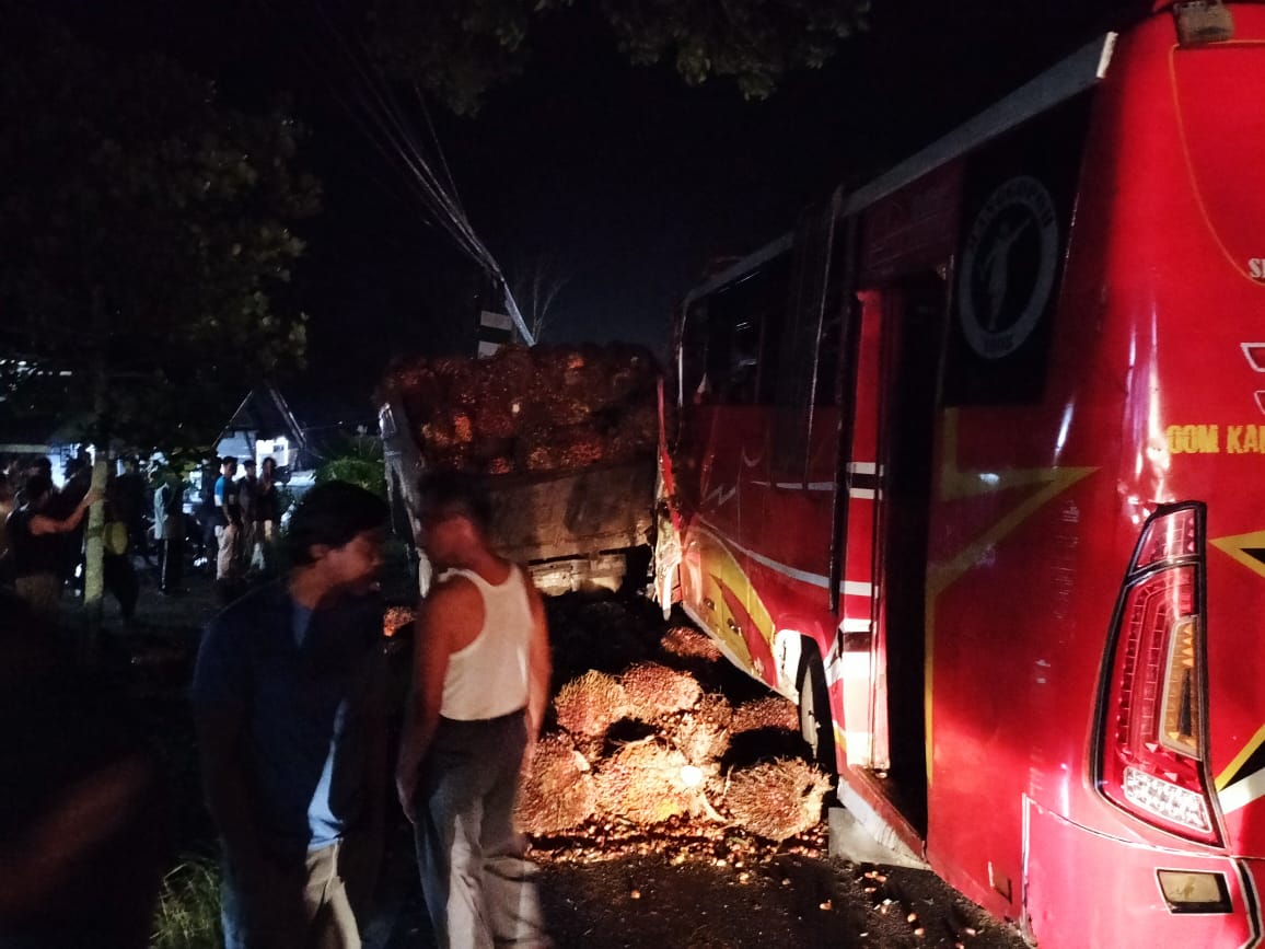 PASAMAN BARAT – Kecelakaan beruntun antara Mobil Bus PO. Mandala dengan Truck Pengangkut Sawit terjadi di Jalan Lintas Jorong Langgam Sepakat Nagari Langgam Sepakat, Kecamatan Kinali, Kabupaten Pasaman Barat, Senin (13/11/2023) sekitar pukul 18.30 WIB malam.