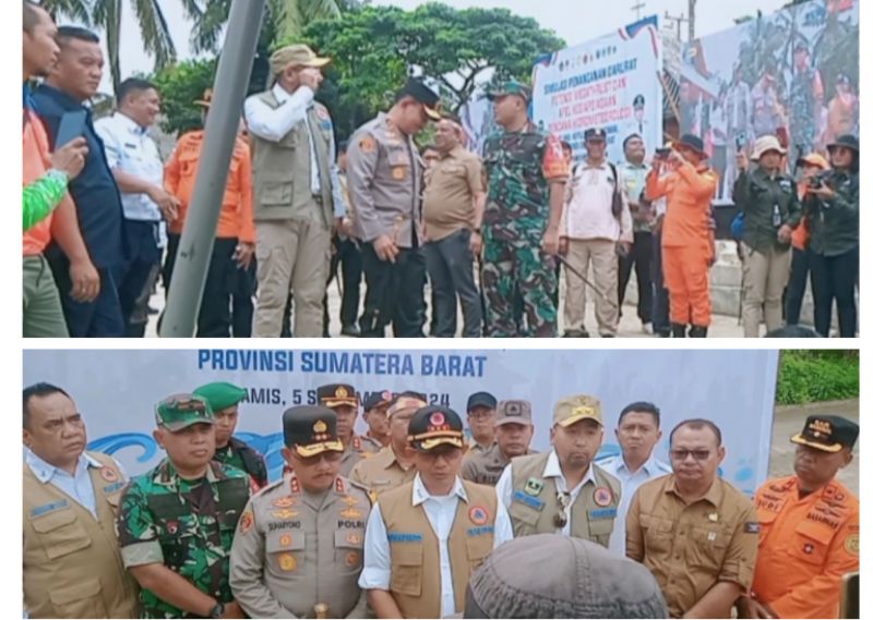 Kunjungan Danrem juga ikut Kapolda Sumbar Irjen Pol Surhayono bersama Kepala BNPB memimpin Apel Kesiapsiagaan dan membuka Simulasi ancaman Megathrust Tahun 2024 di depan lapangan upacara gereja PNIEL di jalan simpang Mapaddegat Desa Tuapeijat Kecamatan Sipora Utara Kabupaten Kepulauan Mentawai, Kamis 5 September 2024.